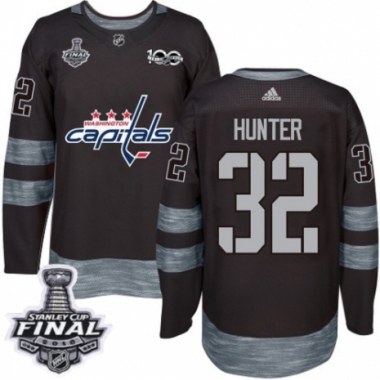 Men's Adidas Washington Capitals #32 Dale Hunter Authentic Black 1917-2017 100th Anniversary 2018 Stanley Cup Final NHL Jersey