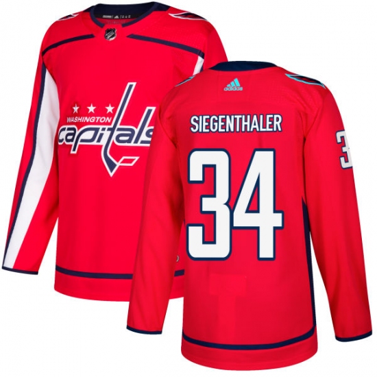 Home>NHL>Washington Capitals>Jonas Siegenthaler>Men's Adidas Washington Capitals #34 Jonas Siegenthaler Authentic Red Home NHL Jersey
