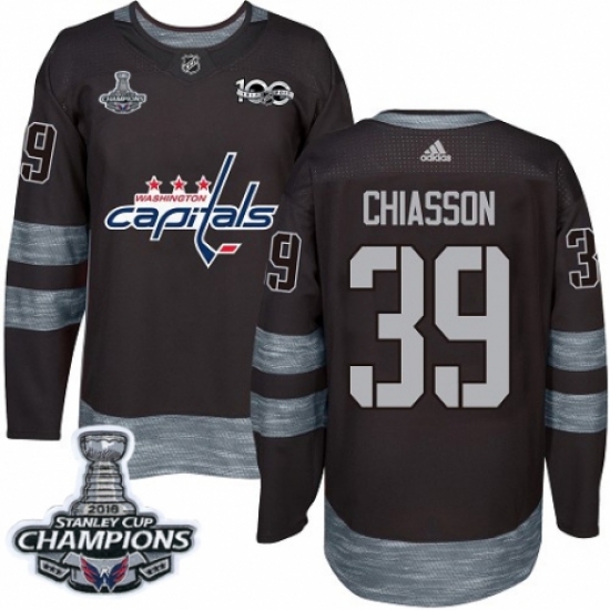 >Men's Adidas Washington Capitals #39 Alex Chiasson Authentic Black 1917-2017 100th Anniversary 2018 Stanley Cup Final Champions NHL Jersey