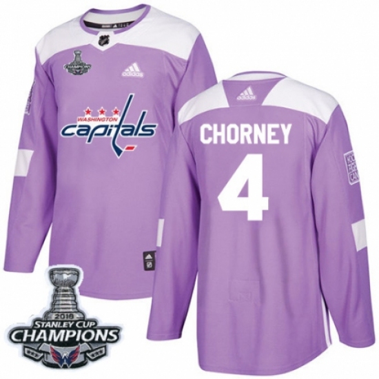 >Men's Adidas Washington Capitals #4 Taylor Chorney Authentic Purple Fights Cancer Practice 2018 Stanley Cup Final Champions NHL Jersey