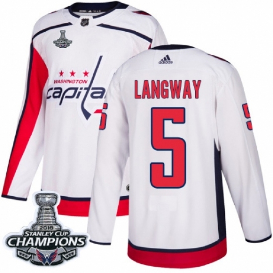 Men's Adidas Washington Capitals #5 Rod Langway Authentic White Away 2018 Stanley Cup Final Champions NHL Jersey