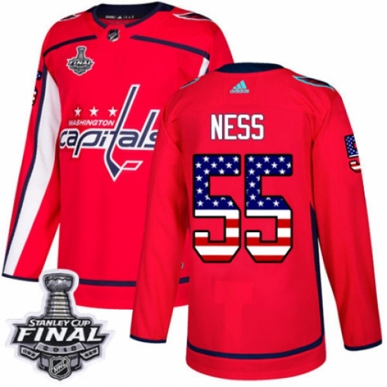 Men's Adidas Washington Capitals #55 Aaron Ness Authentic Red USA Flag Fashion 2018 Stanley Cup Final NHL Jersey