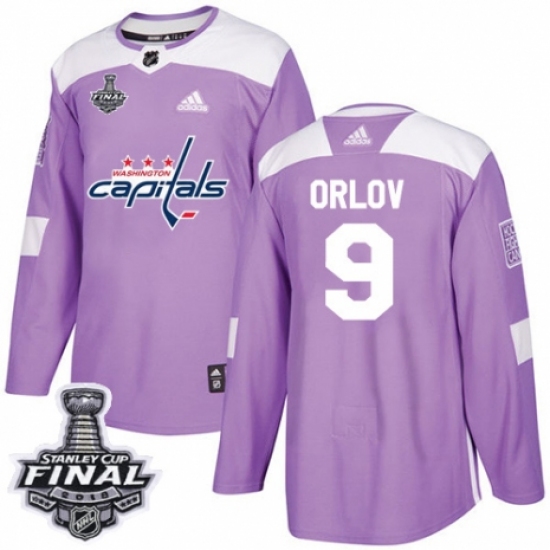 >Men's Adidas Washington Capitals #9 Dmitry Orlov Authentic Purple Fights Cancer Practice 2018 Stanley Cup Final NHL Jersey