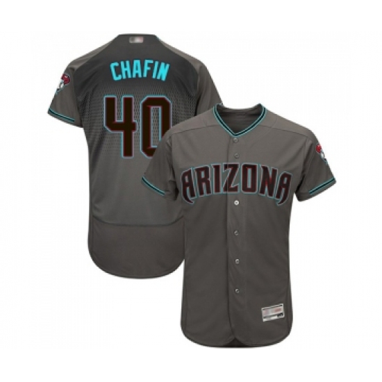 >Men's Arizona Diamondbacks #40 Andrew Chafin Gray Teal Alternate Authentic Collection Flex Base Baseball Jersey