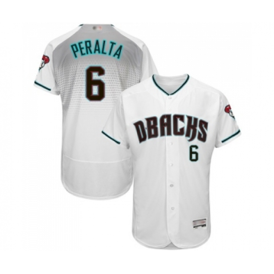 >Men's Arizona Diamondbacks #6 David Peralta White Teal Alternate Authentic Collection Flex Base Baseball Jersey