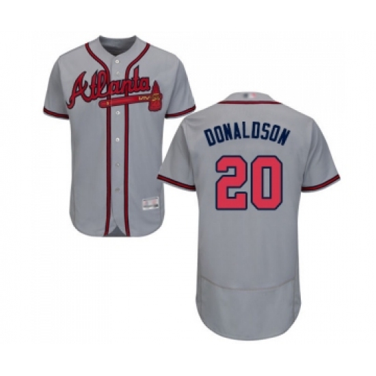 >Men's Atlanta Braves #20 Josh Donaldson Grey Road Flex Base Authentic Collection Baseball Jersey