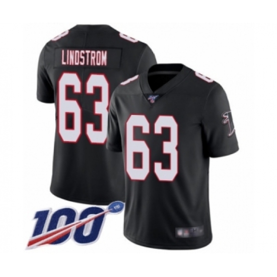 Men's Atlanta Falcons #63 Chris Lindstrom Black Alternate Vapor Untouchable Limited Player 100th Season Football Jersey