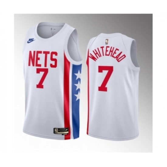 >Men's Brooklyn Nets #7 Dariq Whitehead White 2023 Draft Classic Edition Stitched Basketball Jersey