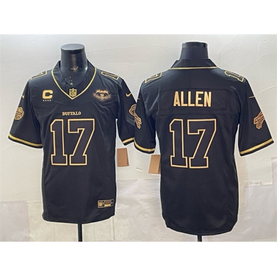 Men's Buffalo Bills #17 Josh Allen Black Gold With C Patch Thanksgiving Vapor Untouchable Limited Stitched Jersey