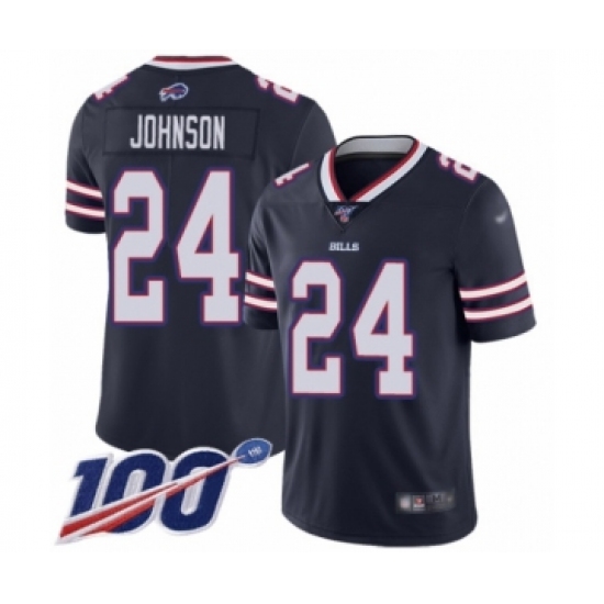 >Men's Buffalo Bills #24 Taron Johnson Limited Navy Blue Inverted Legend 100th Season Football Jersey