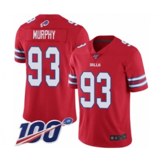 >Men's Buffalo Bills #93 Trent Murphy Limited Red Rush Vapor Untouchable 100th Season Football Jersey