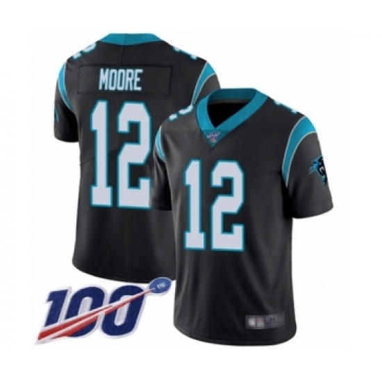 >Men's Carolina Panthers #12 DJ Moore Black Team Color Vapor Untouchable Limited Player 100th Season Football Jersey