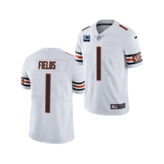 >Men's Chicago Bears 2022 #1 Justin Fields White With 1-star C Patch Vapor Untouchable Limited Stitched Jersey