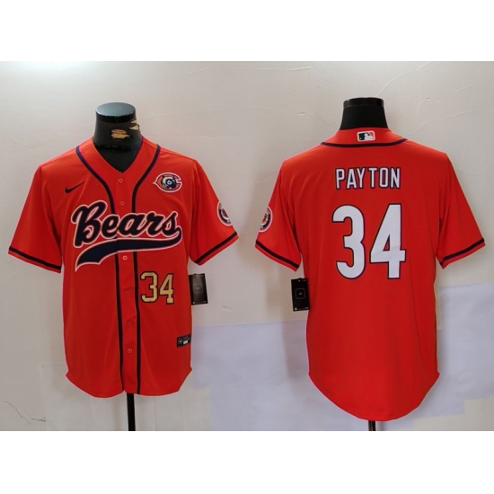 Men's Chicago Bears #34 Walter Payton Orange Throwback With Cool Base Stitched Baseball Jerseys
