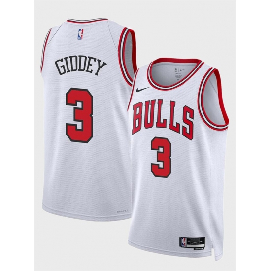 Men's Chicago Bulls #3 Josh Giddey White Association Edition Stitched Basketball Jersey