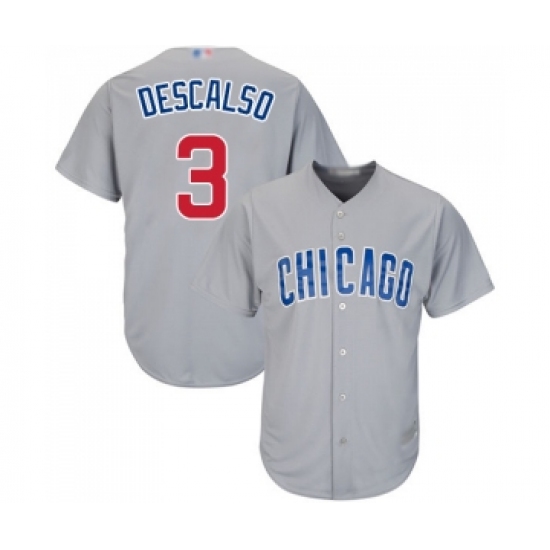 >Men's Chicago Cubs #3 Daniel Descalso Replica Grey Road Cool Base Baseball Jersey
