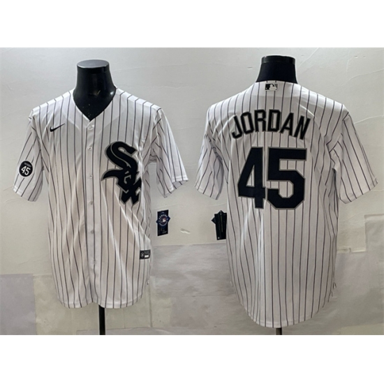 >Men's Chicago White Sox #45 Michael Jordan White With Cool Base Stitched Baseball Jersey