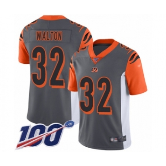 >Men's Cincinnati Bengals #32 Mark Walton Limited Silver Inverted Legend 100th Season Football Jersey