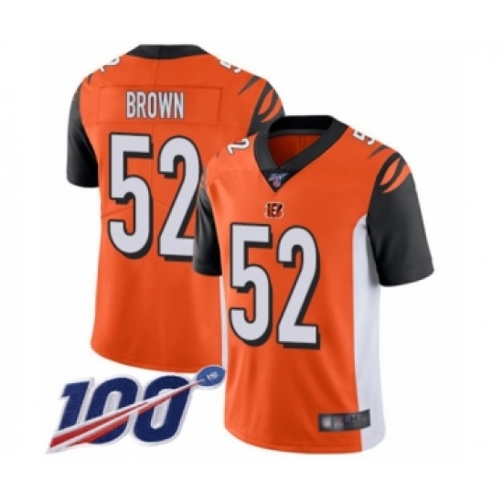 >Men's Cincinnati Bengals #52 Preston Brown Orange Alternate Vapor Untouchable Limited Player 100th Season Football Jersey