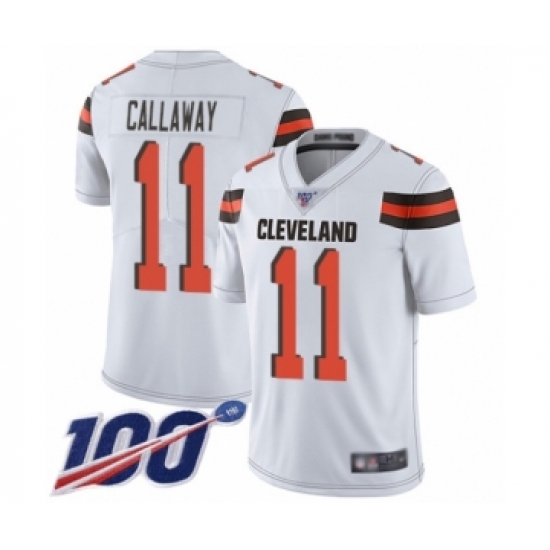 Men's Cleveland Browns #11 Antonio Callaway White Vapor Untouchable Limited Player 100th Season Football Jersey