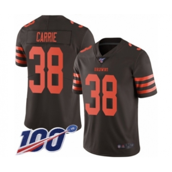 Men's Cleveland Browns #38 T. J. Carrie Limited Brown Rush Vapor Untouchable 100th Season Football Jersey