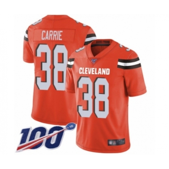 Men's Cleveland Browns #38 T. J. Carrie Orange Alternate Vapor Untouchable Limited Player 100th Season Football Jersey