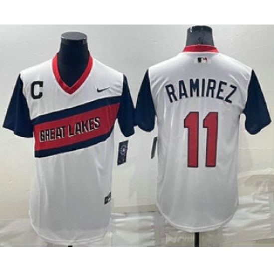 >Men's Cleveland Indians #11 Jose Ramirez White 2021 Little League Classic Stitched Nike Jersey