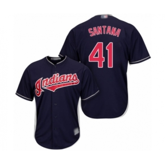 >Men's Cleveland Indians #41 Carlos Santana Replica Navy Blue Alternate 1 Cool Base Baseball Jersey