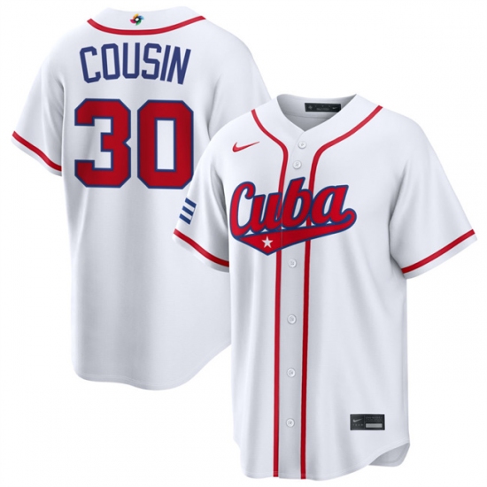 >Men's Cuba Baseball #30 Josimar Cousin White 2026 World Baseball Classic Home Stadium Stitched Jersey