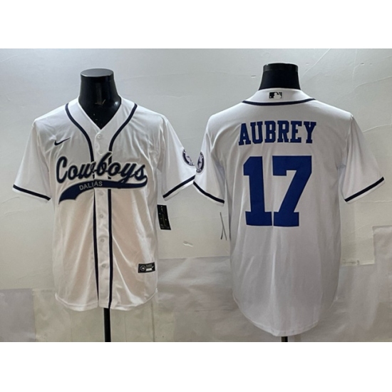 >Men's Dallas Cowboys #17 Brandon Aubrey White Cool Base Stitched Baseball Jersey