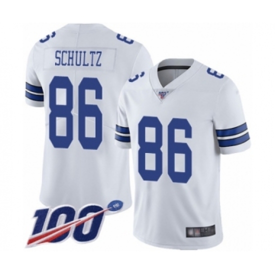 >Men's Dallas Cowboys #86 Dalton Schultz White Vapor Untouchable Limited Player 100th Season Football Jersey