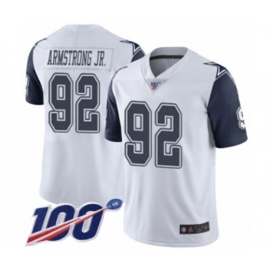 >Men's Dallas Cowboys #92 Dorance Armstrong Jr. Limited White Rush Vapor Untouchable 100th Season Football Jersey
