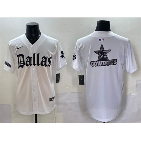 Men's Dallas Cowboys Team Big Logo White 'Gothic Lone Star Edition' Limited Stitched Baseball Jersey