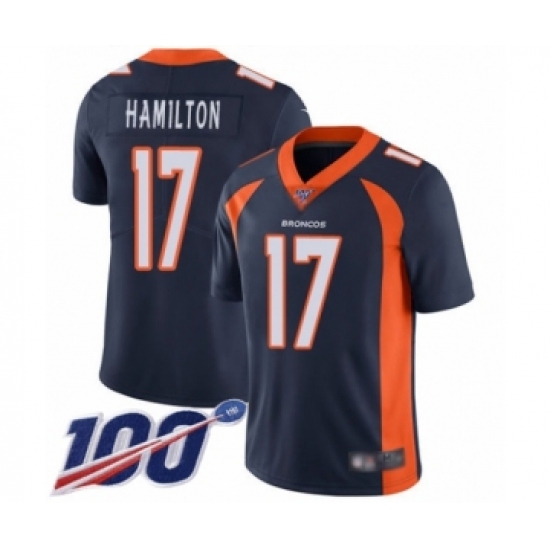 >Men's Denver Broncos #17 DaeSean Hamilton Navy Blue Alternate Vapor Untouchable Limited Player 100th Season Football Jersey