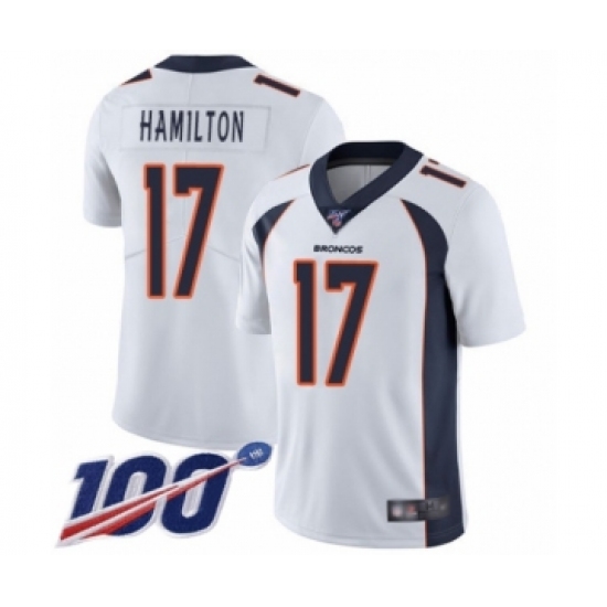 Men's Denver Broncos #17 DaeSean Hamilton White Vapor Untouchable Limited Player 100th Season Football Jersey