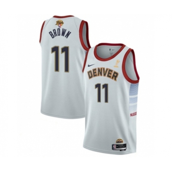 Men's Denver Nuggets #11 Bruce Brown White 2023 Finals Association Edition Stitched Basketball Jersey