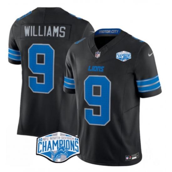 Men's Detroit Lions #9 Jameson Williams Black 2024 NFC North Champions F.U.S.E. Vapor Limited Stitched Jersey