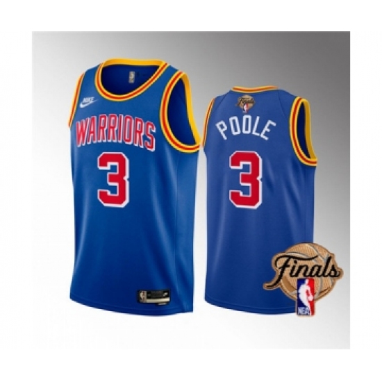 >Mens Golden State Warriors #3 Jordan Poole 2022 Royal NBA Finals Stitched Jersey