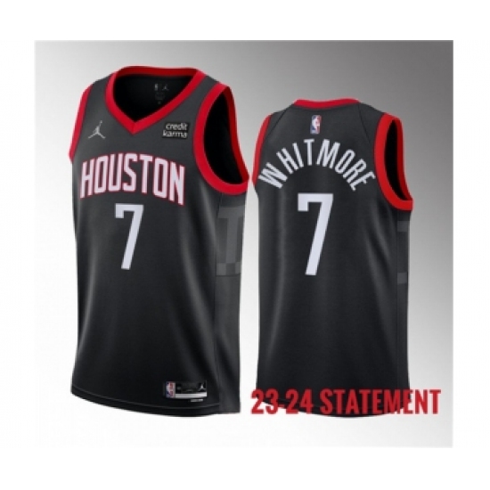 >Men's Houston Rockets #7 Cam Whitmore Black 2023 Draft Statement Edition Stitched Basketball Jersey