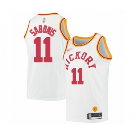 >Men's Indiana Pacers #11 Domantas Sabonis Authentic White Hardwood Classics Basketball Jersey