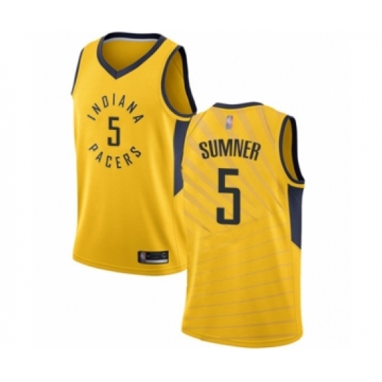 >Men's Indiana Pacers #5 Edmond Sumner Authentic Gold Basketball Jersey Statement Edition