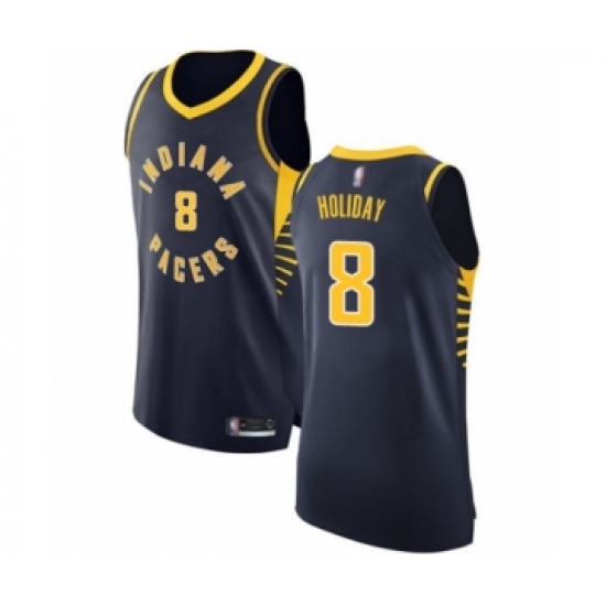 >Men's Indiana Pacers #8 Justin Holiday Authentic Navy Blue Basketball Jersey - Icon Edition