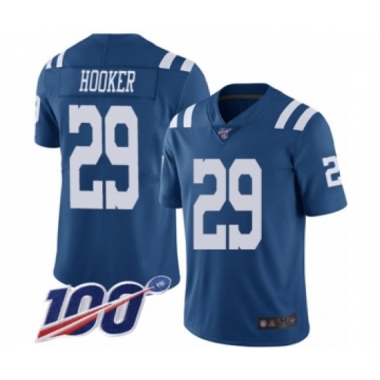 >Men's Indianapolis Colts #29 Malik Hooker Limited Royal Blue Rush Vapor Untouchable 100th Season Football Jersey