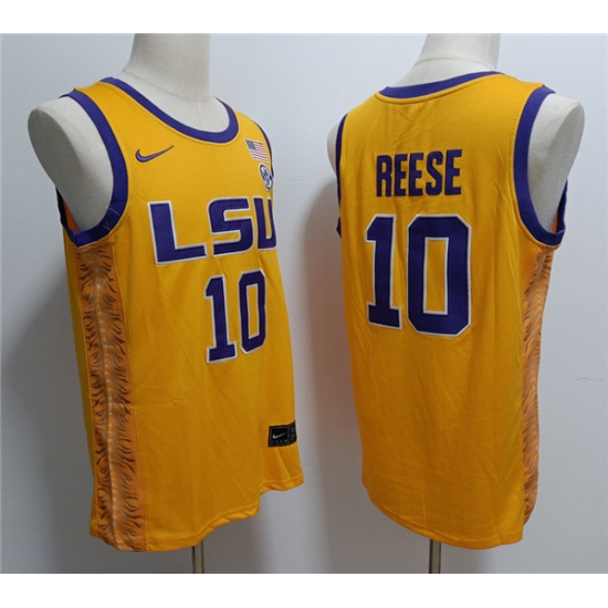 Men's LSU Tigers #10 Angel Reese Yellow Stitched Jersey