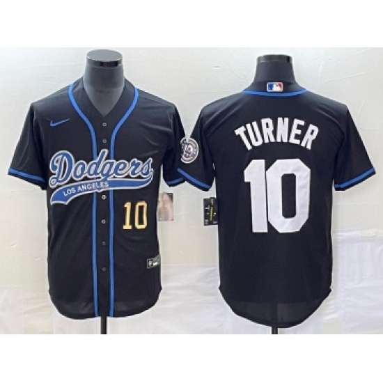 Men's Los Angeles Dodgers #10 Justin Turner Number Black Cool Base Stitched Baseball Jersey