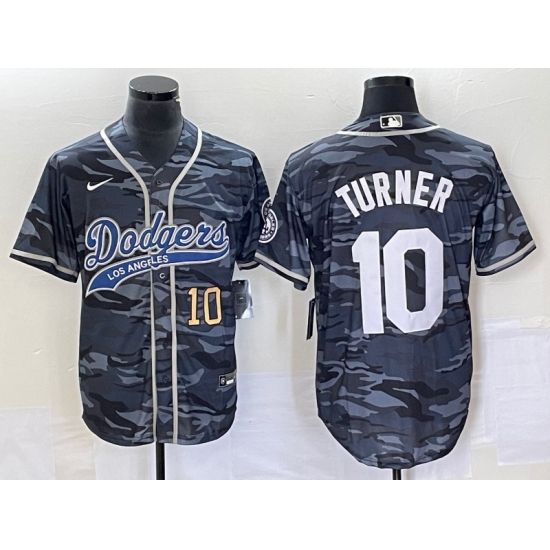 Men's Los Angeles Dodgers #10 Justin Turner Number Grey Camo Cool Base Stitched Baseball Jersey