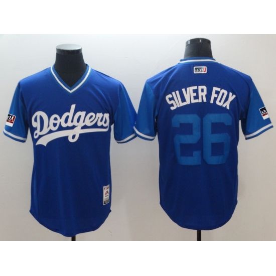 >Men's Los Angeles Dodgers #26 Chase Utley Silver Fox Royal Players Weekend Team Jersey