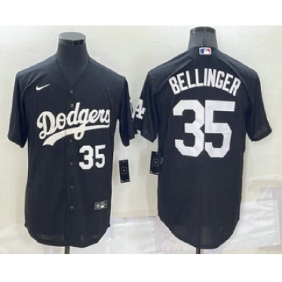 >Men's Los Angeles Dodgers #35 Cody Bellinger Number Black Turn Back The Clock Stitched Cool Base Jersey