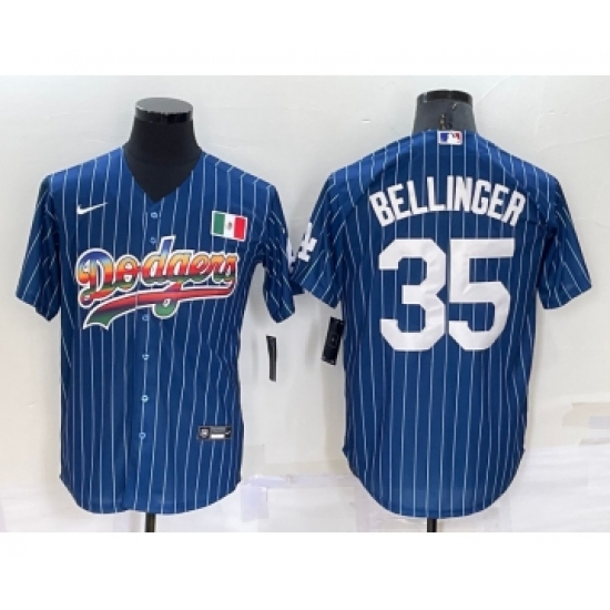 >Men's Los Angeles Dodgers #35 Cody Bellinger Rainbow Blue Red Pinstripe Mexico Cool Base Nike Jersey