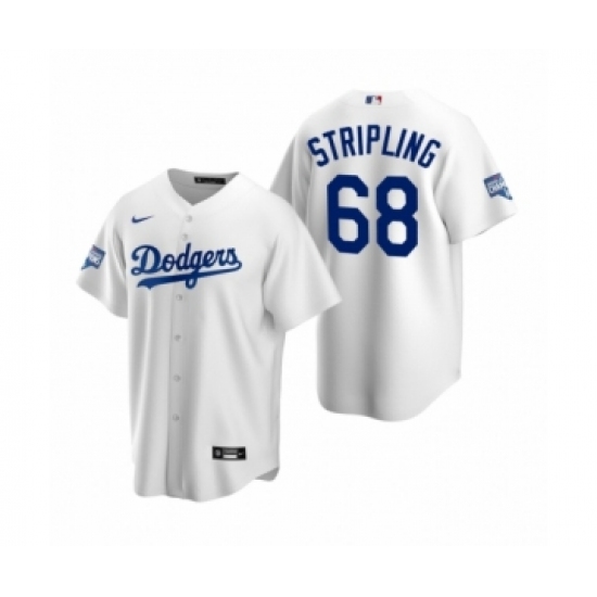 >Men's Los Angeles Dodgers #68 Ross Stripling White 2020 World Series Champions Replica Jersey